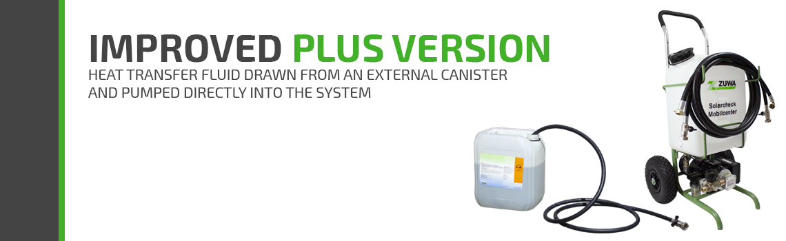 Flushing, venting and filling heat transfer medium into solar systems in one process. The latest member of the ZUWA filling stations family: small, easy to transport, fits upright into the trunk of a Volkswagen Golf/ Rabbit!