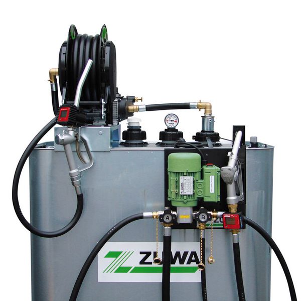 Auf Platte montierte Einheit mit Pumpe, Zapfpistole und Zählwerk zur Aufhängung am Tank oder an der Wand. Das stationäre Servicecenter eignet sich besonders für Motorölwechsel in größeren Maschinen und Anlagen, wie BHKWs, kann aber ebenso gut für zahlreiche andere Flüssigkeiten eingesetzt werden.