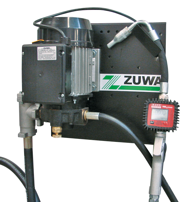 Kleintank 990 l mit ADR-Zulassung Anschlusszubehör bestehend aus: Fußventil 1", Sieb für Fußventil 1", Saugrohr 1", Faßanschluß 2", Winkel 1"i x 1"a, Verbindungs - schlauch 1", Verschraubung G1"x1"Tülle, Schlauchtülle G1"x1"Tülle BAM Zulassungsnummer: Z-40.21-118 IBC-Zulassungsnummer: UN 31 HA1/Y/..../D/SCHÜTZ1/BAM10104/0/1330 Viscomat 70, 230V max. 25 ltr./min., max. 6 bar KW 0,75 A: 4,6 U/min. 1400 Zapfpistole für Öle mit digitalem Zählwerk K400, starr Schlauchtrommel automatisch 3/4" incl. 8 m Schlauch