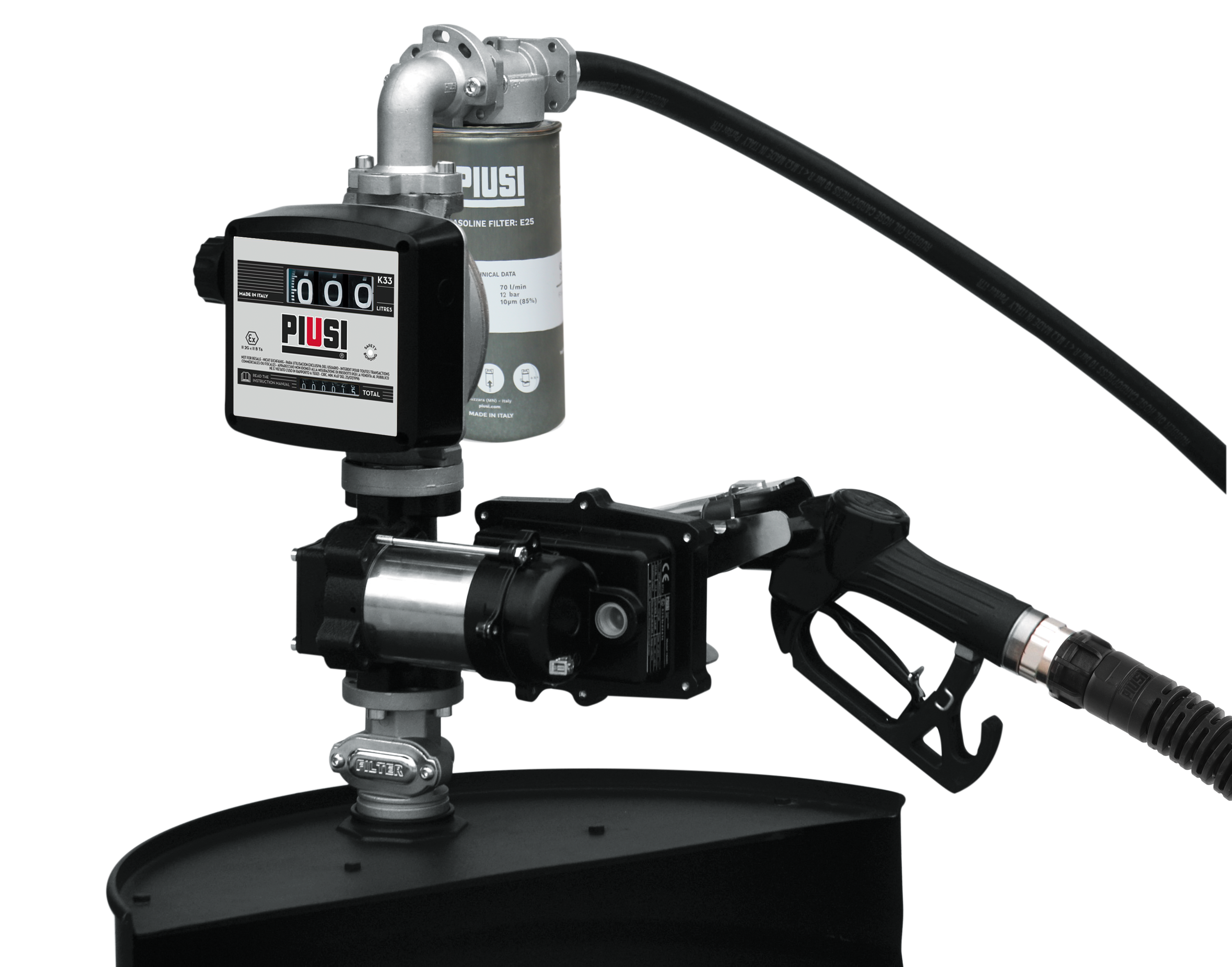Betankungsset EX50-BS/Z, Zählwerk K33 ATEX, 230V für Diesel/Benzin/Kerosin, a.Platte,o.Saugschlauch