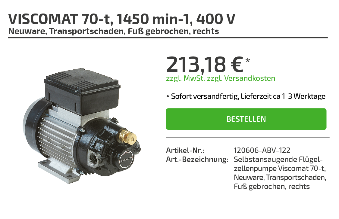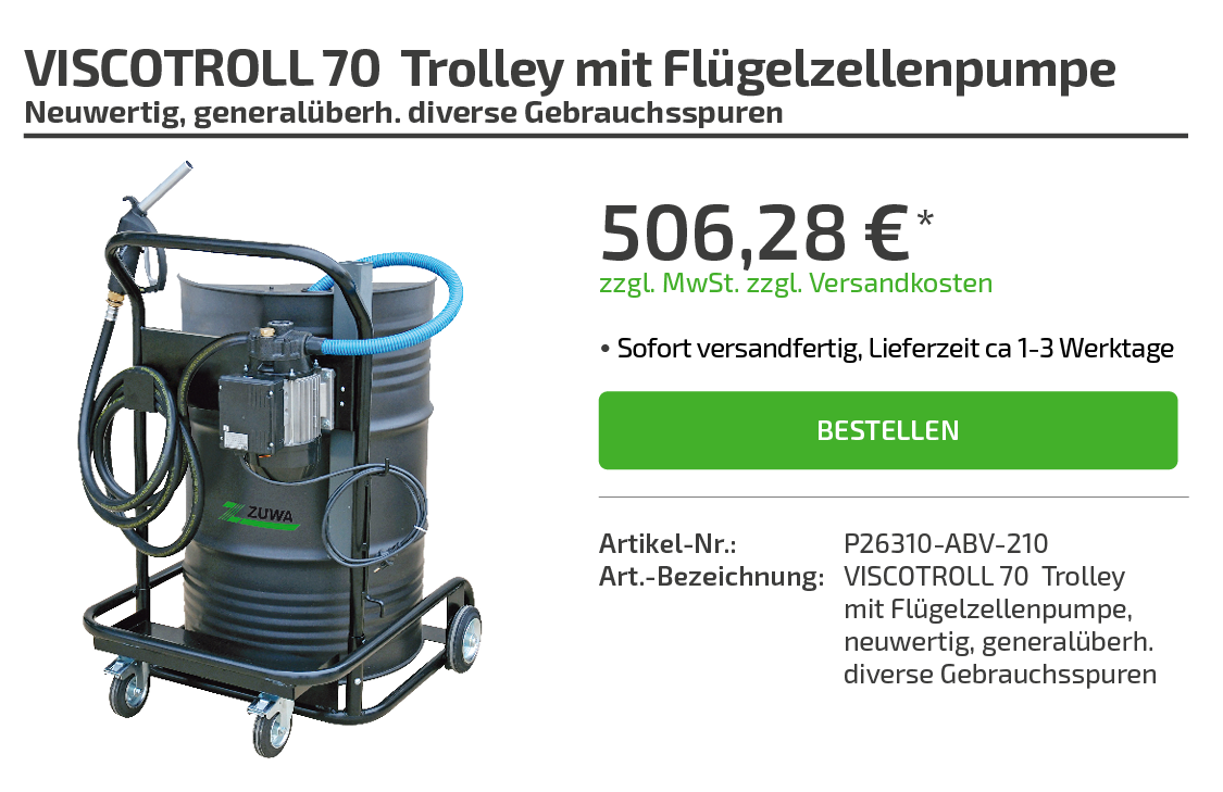 | Art.-Bezeichnung: | VISCOTROLL 70 Trolley mit Flügelzellenpumpe, neuwertig, altes Modell, diverse Gebrauchsspuren |