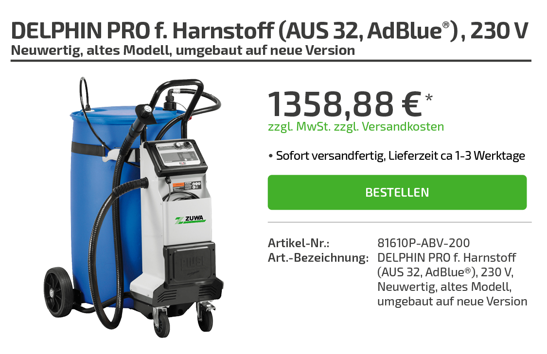 | Art.-Bezeichnung: | DELPHIN PRO f. Harnstoff (AUS 32, AdBlue®), 230 V, neuwertig, altes Modell, umgebaut auf neue Version |